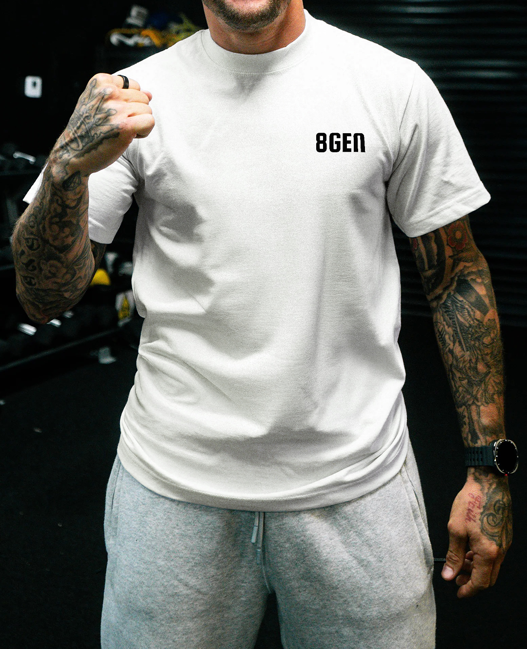 8GEN Project tişörtleri %100 pamuk ipliğinden üretilmiştir. İçerisinde polyester, elastan veya başka sentetik bir karışım bulunmaz. Tamamen doğal pamuk liflerinden üretildiği için hem cilt dostudur hem de nefes alabilir yapıdadır.