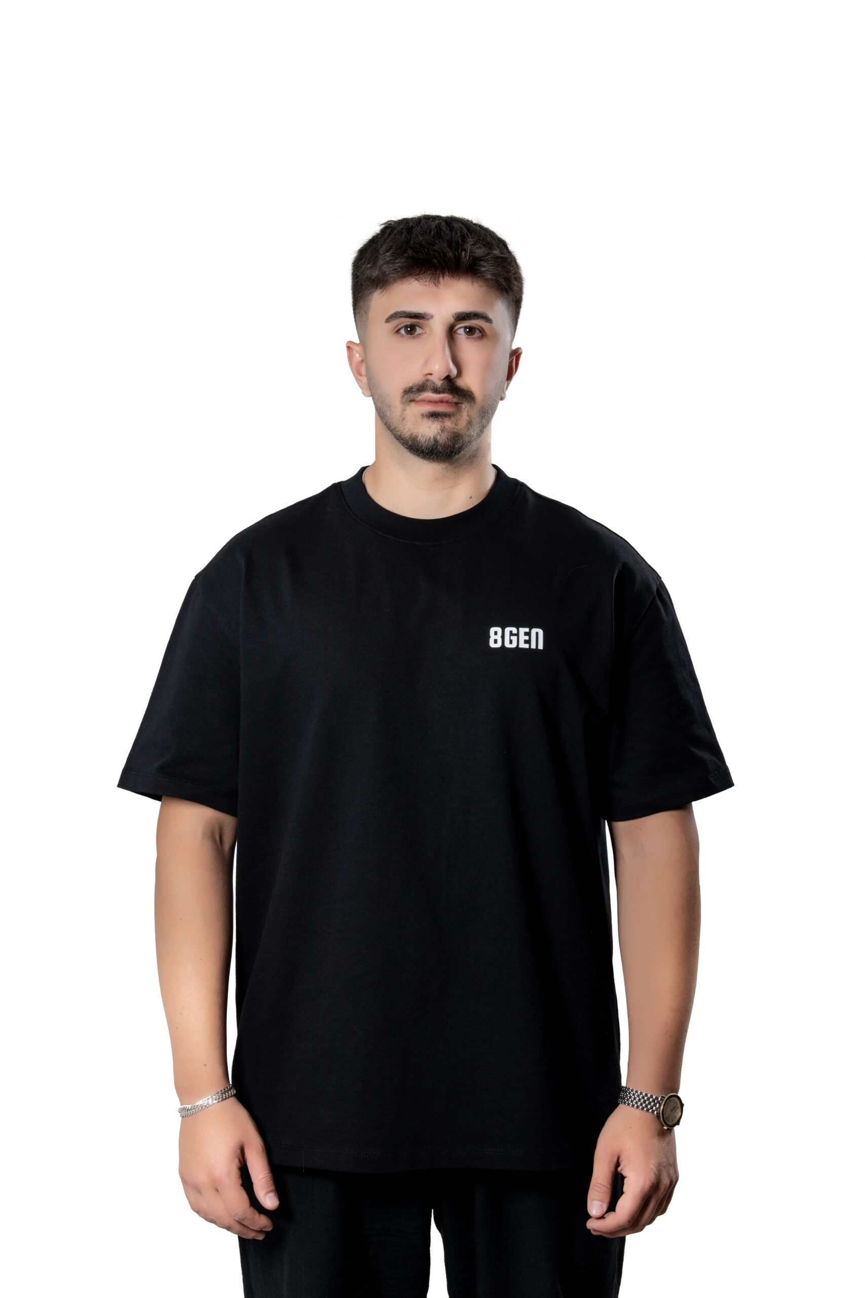 8GEN Project tişörtleri %100 pamuk ipliğinden üretilmiştir. İçerisinde polyester, elastan veya başka sentetik bir karışım bulunmaz. Tamamen doğal pamuk liflerinden üretildiği için hem cilt dostudur hem de nefes alabilir yapıdadır.